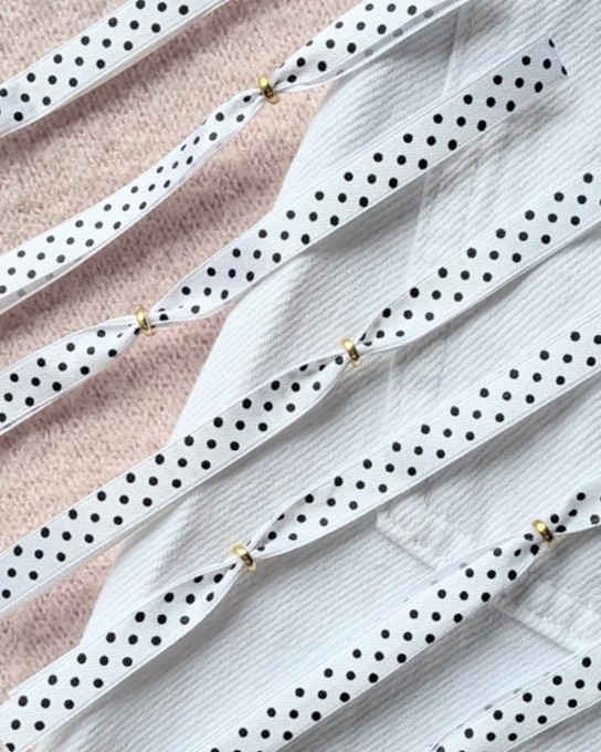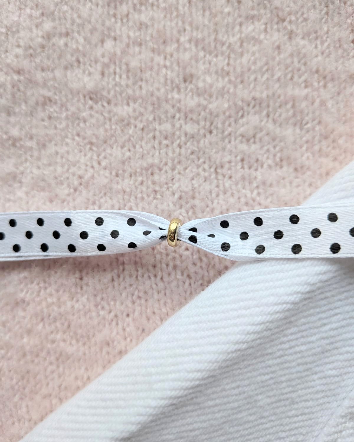 De armband is verstelbaar, dus past iedereen. Het heeft een leuke polka dot print met een gouden schuifknoop.